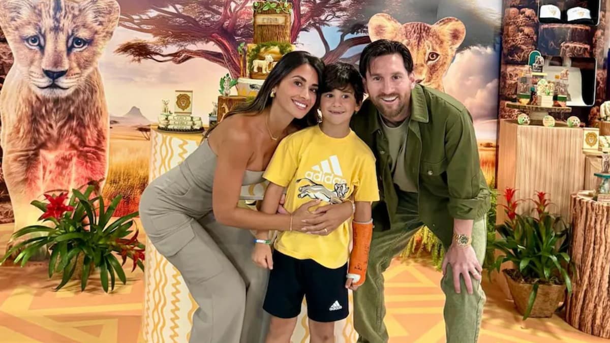 En la foto, Messi y Antonela están vestidos con atuendos que coinciden con el tema de la fiesta. Antonela llevaba un mono beige con un corte sin tirantes y pantalones de carga combinados con zapatillas blancas. Messi optó por un atuendo verde oliva, que incluye una camiseta, camisa, pantalones y zapatos informales. El cumpleaños, Ciro, lucía una camiseta amarilla con un diseño felino impreso, pantalones cortos negros y zapatos deportivos.