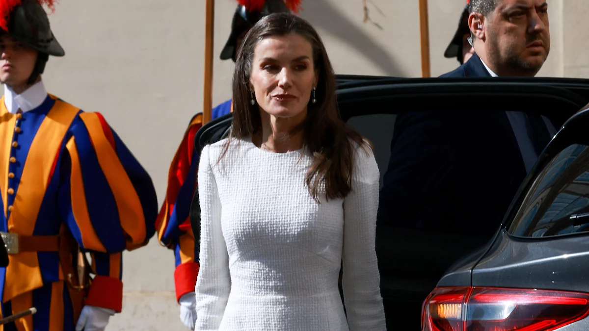 Como lo hizo en 2025, Reina Letizia eligió vestirse de blanco nuevamente hoy, algo que podría sorprender a cualquiera que no esté familiarizado con el “privilegio del blanco” (il privilegio del bianco). Si bien el protocolo generalmente dicta que las mujeres vistan de negro para reunirse con el Papa, hay una excepción y la Reina de España es una de las pocas figuras con derecho a ello.